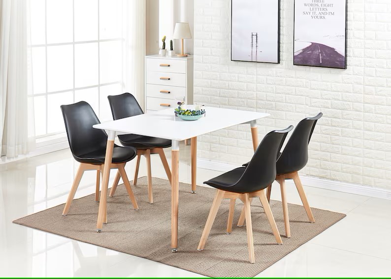 This Dining is the best and Perfect for you the contemporary design, sleek seating and the combination of quality finished Chairs are all the ingredients you need to create a stylish setting for exceptional dining. The White MDF top and Beach wood legs pair perfectly with The Solid sitting chairs